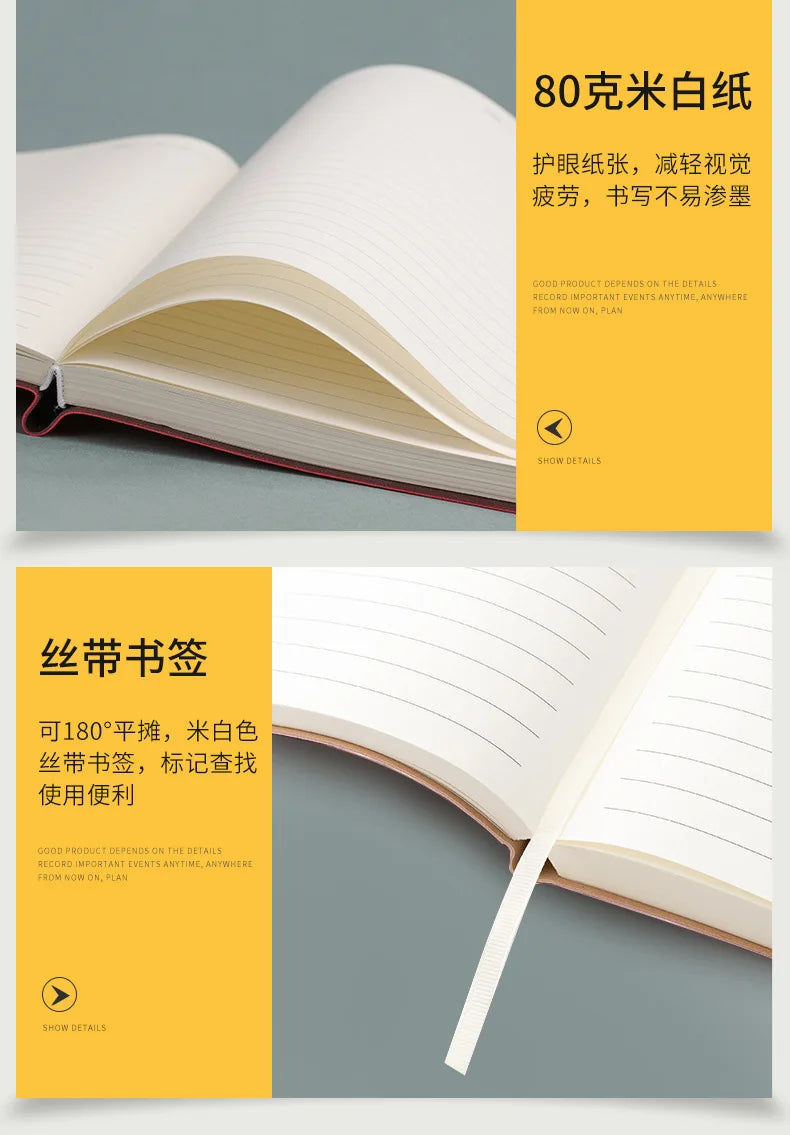 Caderno A4 com Capa Soft PU – Páginas em Branco e Linha Horizontal – Diário para Escritório e Estudo – 100 ou 208 Folhas